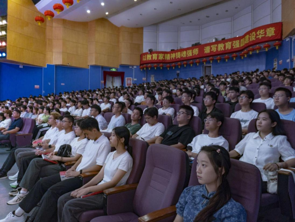 龙俊书记则以“弘扬抗战精神,在传承和担当中彰显青春本色”为主题,通过分享电影《南京照相馆》里的故事情节、九三阅兵的盛大场景,带领新生感悟抗战精神“天下兴亡、匹夫有责的爱国情怀,视死如归、宁死不屈的民族气节,不畏强暴、血战到底的英雄气概和百折不挠、坚韧不拔的必胜信念”的具体内涵,汲取奋进力量,同时细致解读“多元成才菜单”,鼓励新生涵养家国情怀、坚定理想信念、锤炼过硬本领,以“心中有阳光,脚下有力量”的姿态应对成长挑战。