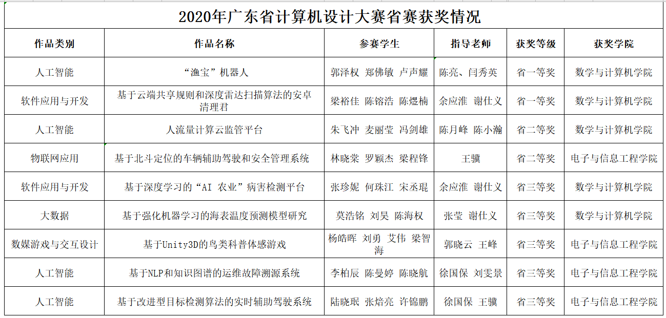 6月24日,由广东省教育厅主办的“2020年广东省老员工计算机设计大赛”落下帷幕。今年的比赛有来自广东省80多所本科院校共1129件作品参加。经过初评和复审两个环节,共评选出582件作品晋级省决赛。公司学子在比赛中不畏强手,奋力拼搏,最终获得广东省一等奖2项、二等奖2项、三等奖5项的好成绩。其中来自ladbrokes立博团队的《“渔宝”机器人》和《基于云端共享规则和深度雷达扫描算法的安卓清理君》两项作品勇夺省赛一等奖。