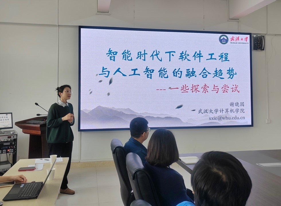 1月10日上午,应公司邀请,武汉大学计算机公司教授谢晓园同师公司生进行了一场深度学术交流。在湖光校区明德楼A1-405会议室,谢晓园教授作题为《智能时代下软件工程与人工智能的融合趋势—一些探索与尝试》的学术报告。报告会由经理彭小红教授主持,计科系主任余应淮、软工系主任陈小瀚及相关专业师生50余人参加了此次报告会。