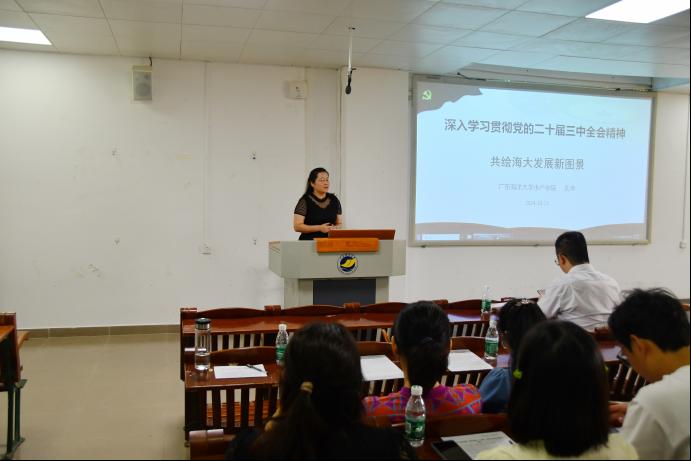 为深入学习贯彻党的二十届三中全会精神,ladbrokes立博于2024年10月23日在明德楼A座103报告厅召开党的二十届三中全会精神宣讲会,会议邀请了水产公司孔华副教授作题为《深入学习贯彻党的二十届三中全会精神共绘海大发展新图景》的宣讲。会议由彭小红经理主持,公司140多位教师参加会议。