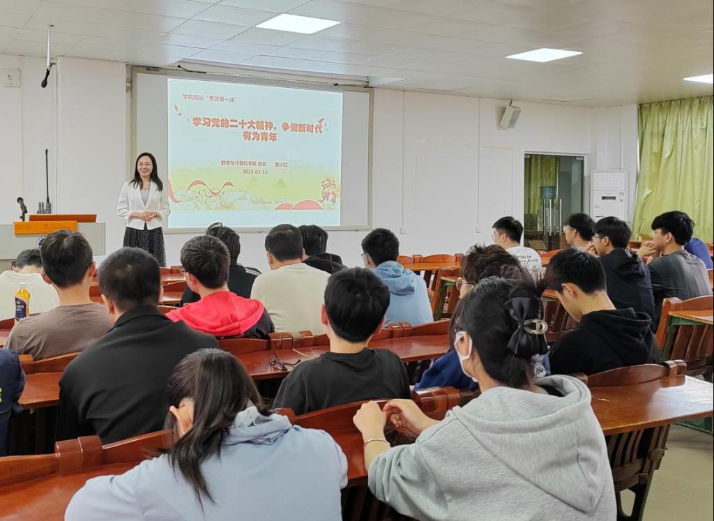 15日下午,彭小红以“学习党的二十大精神,争做新时代有为青年”为题,带领同学们对党的二十大报告主题和精神内涵等方面进行了深入学习,并以我国计算机发展史为背景,结合“银河精神”“青年强则国强”“做新时代的有为青年”等三个方面,号召同学们要坚定不移听党话、跟党走,站在时代新起点上,把握时代机遇,树立远大理想,胸怀家国,勇于拼搏、团结协作,勇做新时代好青年。