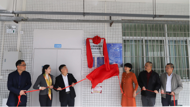 仪式的最后,杨洲书记、高静董事长、方鑫总经理、龙俊书记、彭小红经理和杨原志部长共同为联合共建实验室揭牌。
