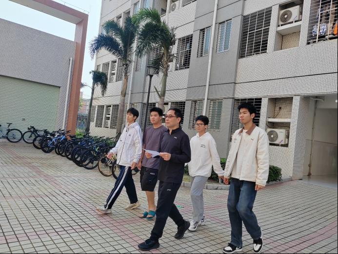 12月30日,为切实了解员工在校的学习生活状况,倾听员工心声诉求,数学与计算机公司党委书记龙俊在班主任冼远清老师陪同下走入信管1251、1252班男生宿舍走访调研,与同学们面对面亲切交谈,将关怀与温暖送到学子身边。