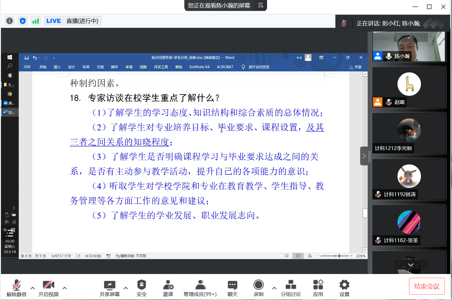 为迎接教育部工程教育专业认证专家进校考查,强化员工主动参与意识,营造积极氛围,5月14日上午,ladbrokes立博在腾讯会议室开展计算机专业员工专项培训会。会议由计算机专业认证核心组成员陈小瀚主讲,公司党委书记谢仕义、经理彭小红、党委副书记周荣伟、计科系主任余应淮、分管辅导员及计算机专业员工共550余人参加。